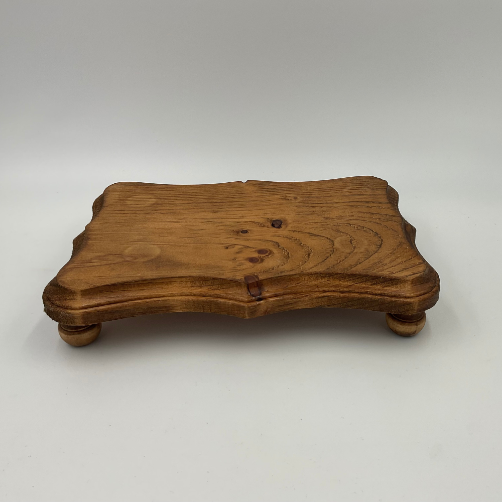 Rectangular wooden table riser. 4 legs (wood), 1" high, 5" x 7.5" surface area.