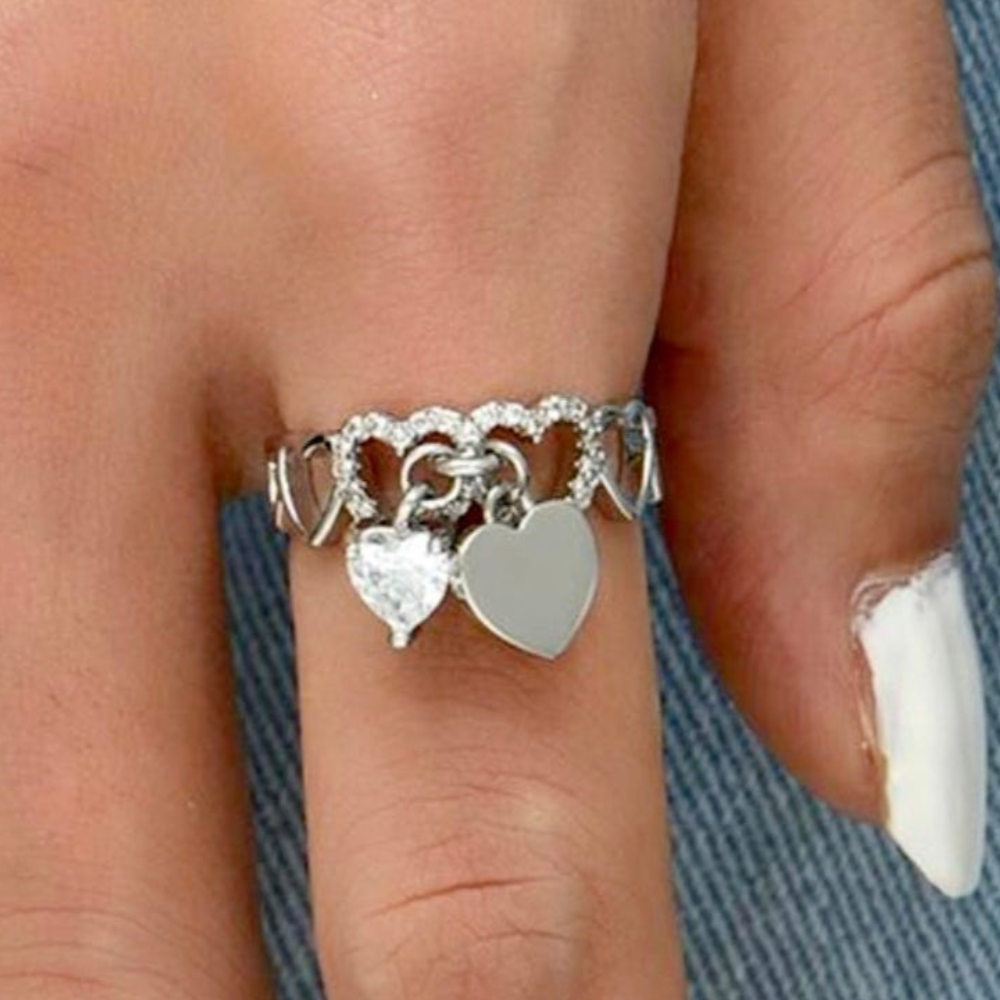 Jova NYC - Dangling Double Hearts Ring (Silver)